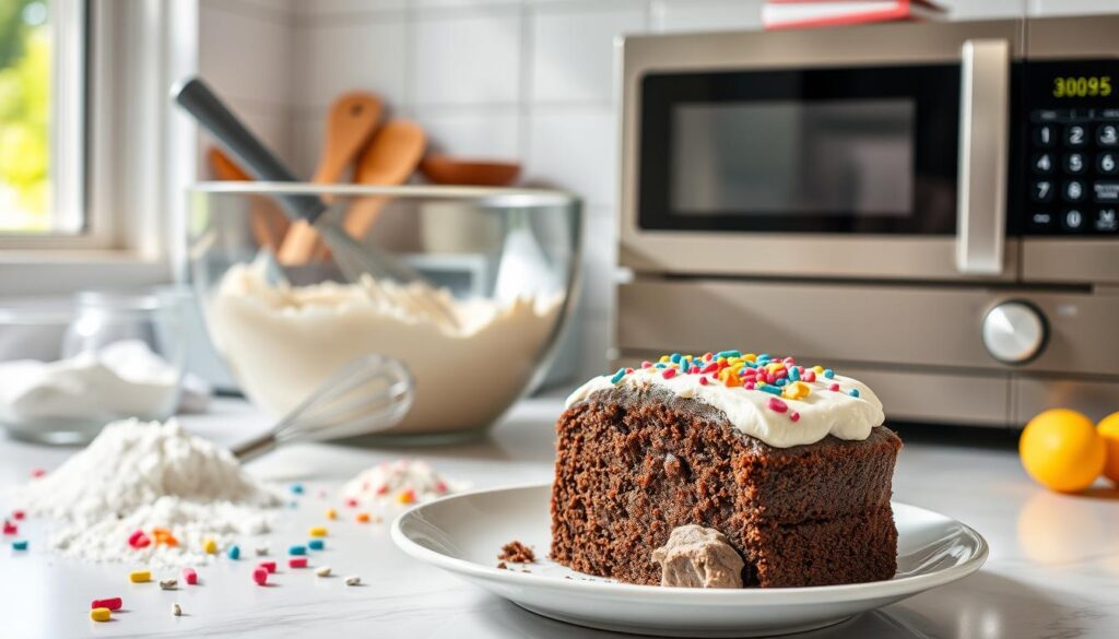 Microwave baking is quick and easy. It’s perfect for those in a hurry or without an oven. Mix your ingredients, pour into a safe dish, and microwave for a few minutes.