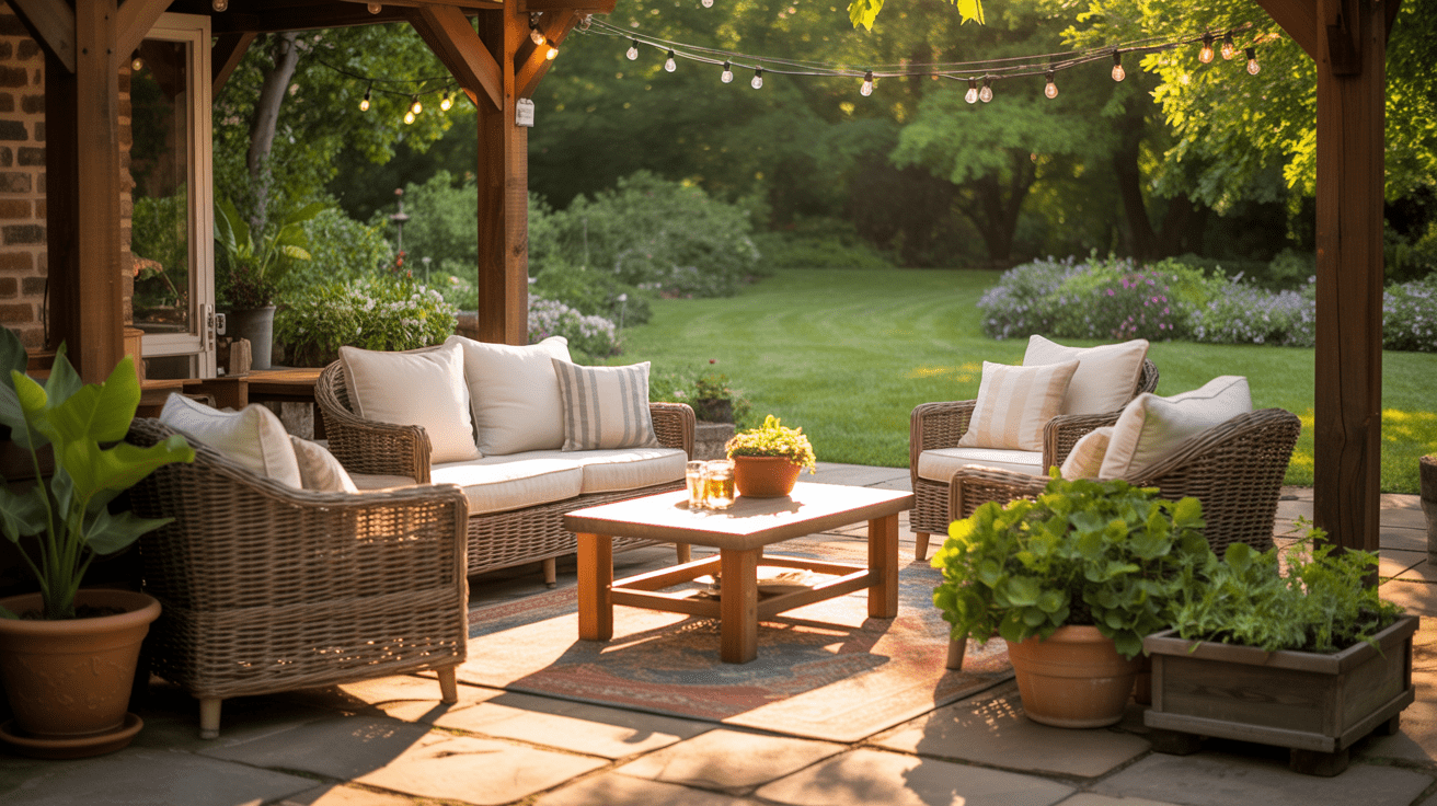 Yellow combinations bring cheerful energy to patios. Mix golden coreopsis, yellow daylilies, and thread-leaf coreopsis for sunny displays.