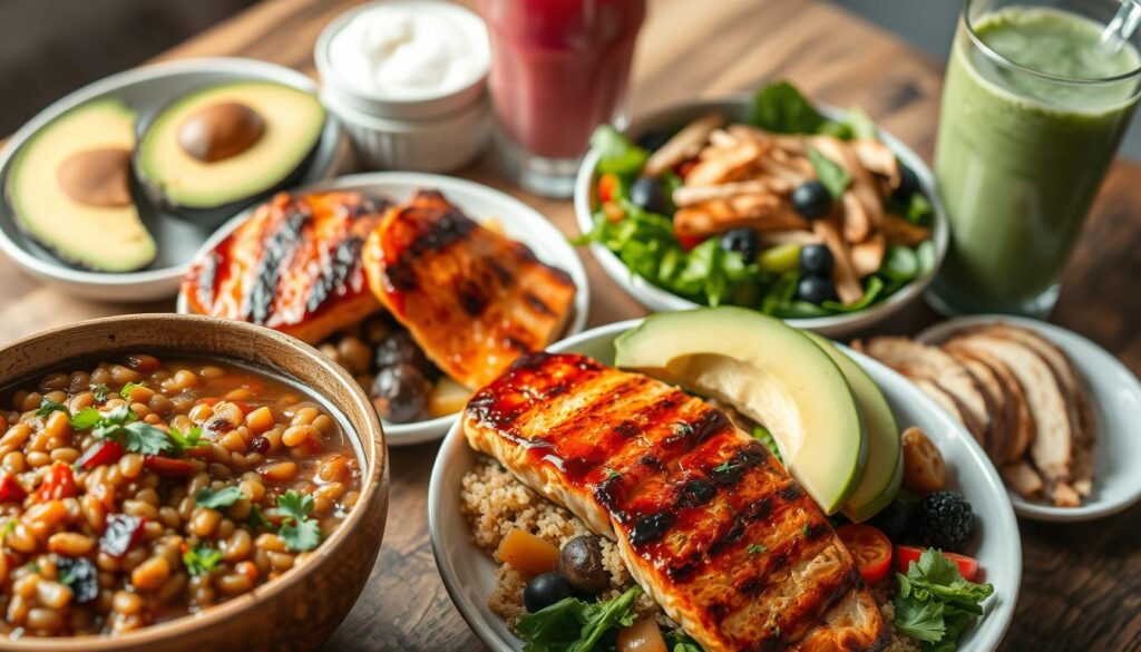 Adding different high protein foods to your diet is key. Both animal and plant proteins have great benefits. Let’s look at some top protein sources for your meals.